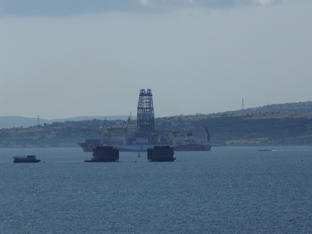 Türkiye'nin "Milli Enerji ve Maden Politikası" kapsamında, denizlerdeki arama ve sondaj faaliyetlerinin artırılması amacıyla TPAO tarafından satın alınan ve dün düzenlenen törenle Akdeniz'e doğru yola çıkan Yavuz, Çanakkale Boğazı'ndan geçti.