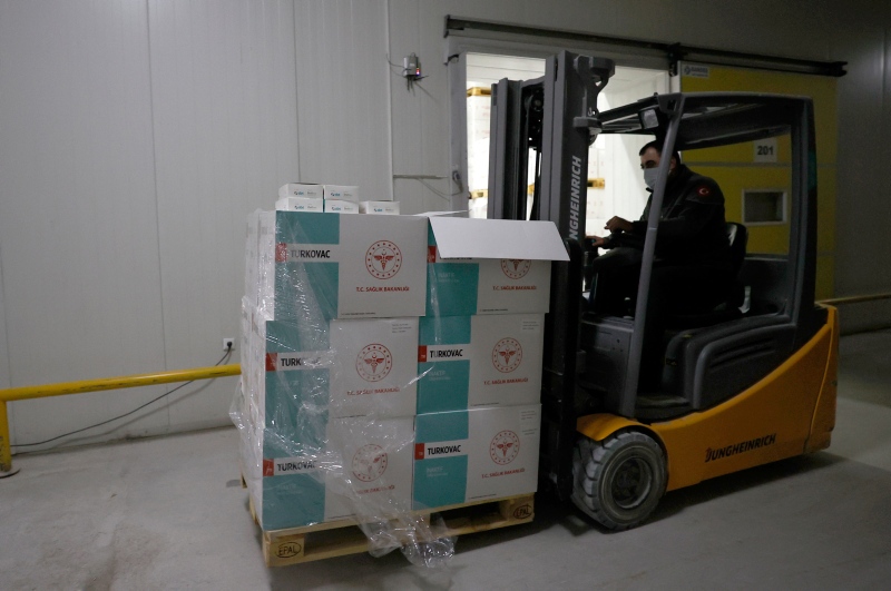Yerli Kovid-19 aşısı TURKOVAC'ın yeni serilerinin Türkiye'deki şehir hastanelerine sevkiyatı başladı. Sağlık Bakanlığı Halk Sağlığı Genel Müdürlüğü Aşı ve İlaç Deposundaki aşılar, dün öğleden sonra yüklendikleri tırlarla Ankara'dan diğer illerdeki şehir hastanelerine gönderildi. Sağlık Bakanı Fahrettin Koca, çarşamba günü online olarak gerçekleşen Koronavirüs Bilim Kurulu sonrası yaptığı yazılı açıklamada duyurmuştu.