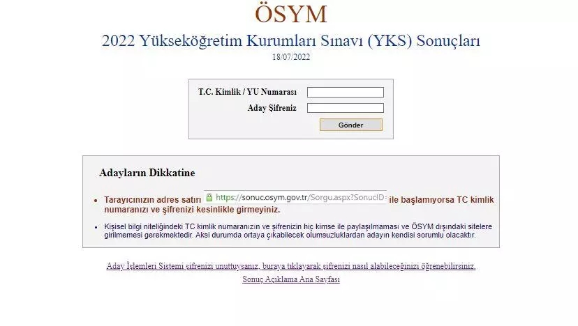ÖSYM Başkanı Prof. Dr. Bayram Ali Ersoy: Yükseköğretim Kurumları Sınavı'nın (YKS) tamamlanmasıyla birlikte başlayan heyecanlı bekleyiş bugün sona erdi. Ölçme, Seçme ve Yerleştirme Merkezi (ÖSYM) olarak 3,5 milyondan fazla adayımızın beklediği 2023-YKS sonuçlarını açıklıyoruz. Hayırlı olsun. An itibariyle osym.gov.tr adresimizden sonuçları öğrenebilirsiniz.