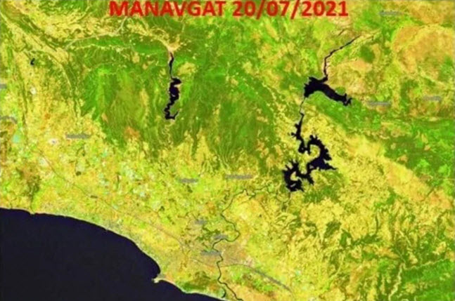 Yangınların ilk görüldüğü yerler arasında Mersin'in Aydıncık ilçesi bulunuyordu. İlçenin 27 Temmuz tarihindeki uydu görüntülerinde ormanlarında tahribat görülmüyor.