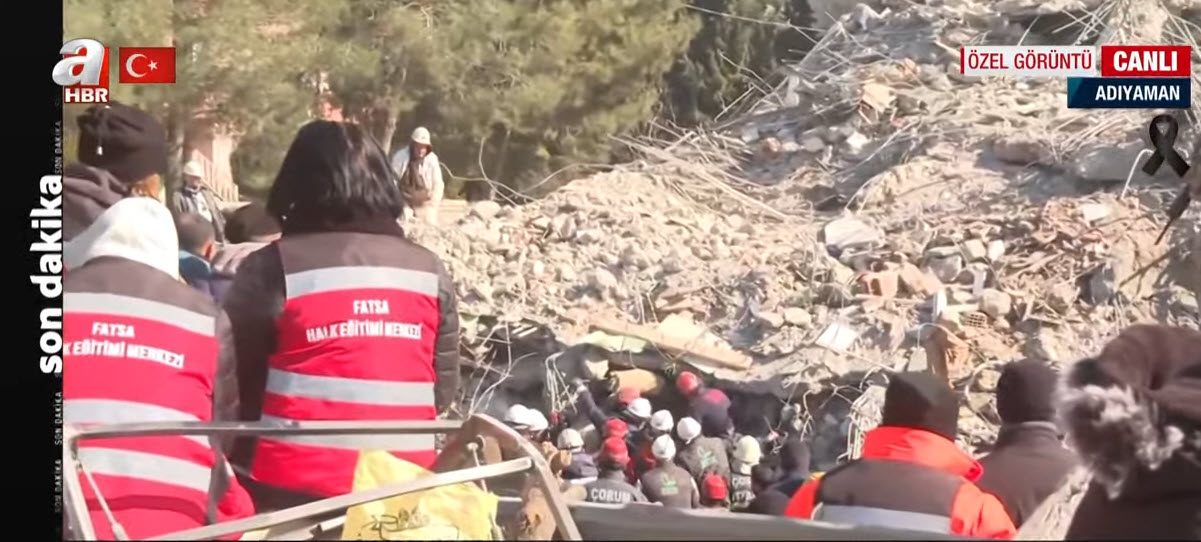 Son dakika deprem haberi... Türkiye'nin yaşadığı "Asrın felaketi" olarak nitelendirilen iki büyük depremin 7. gününde de yeni mucize kurtuluş haberleri bekleniyor. Enkaz başında umutlu bekleyişler sürüyor. A Haber ekipleri depremin ilk anından itibaren son gelişmeleri canlı yayında anbean aktarıyor. Kahramanmaraş'ta enkazdan kadın sesi alındı. 150. saatte önce Ömer, sonra annesi enkazdan sağ kurtarıldı. Adıyaman'da 7 yaşındaki Hacı Ahmet 152 saat sonra enkazdan çıkarıldı. İşte ekiplerin zamana karşı yarışı ve A Haber'in görüntülediği mucize kurtuluş anları...