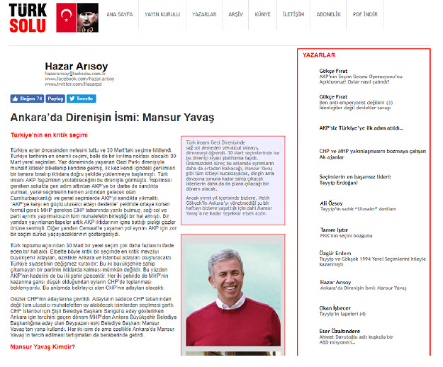 Today's Zaman yazarı ve eski milletvekili Suat Kınıklıoğlu daha önce AK Parti bünyesinde milletvekilliği yaptı.17 Aralık'tan sonra istifa ederek safını değiştiren bir çok paralel milletvekili gibi Kınıklıoğlu da sonrada istifa ederek yerel seçimlerde Mansur Yavaş'ın seçim koordinatörlüğüne getirildi. Seçim sonrası Radikal'de "Mansur Yavaş'ın sahada kazandığı seçim maalesef masabaşında elinden alındı" gibi yazılar yazan Kınıkoğlu, Türkiye'ye gelemiyor. Mansur Yavaş iki ayda bir Londraya gidip Suat Kınıklıoğlu ile görüştüğü söyleniyor.