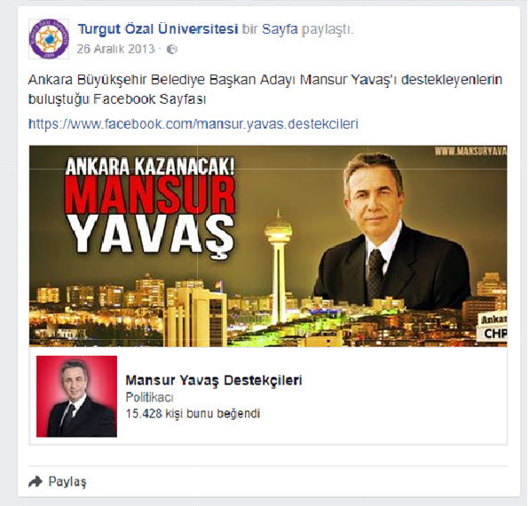 Mansur Yavaş'ın yıldızını parlatan FETÖ'cü Turgut Özal Üniversitesi, 2014 seçimleri öncesi Mansur Yavaş kampanyasını açıktan destekledi.
