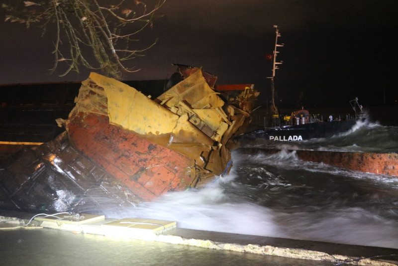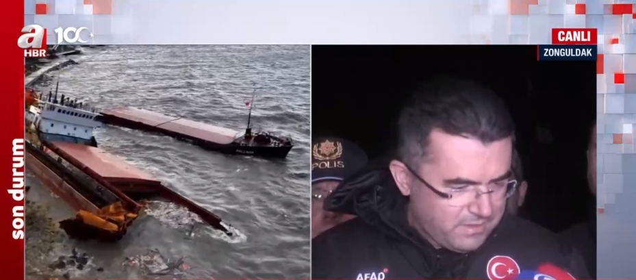 Zonguldak Ereğli limanındayız. Dün rüzgar hızı zaman zaman 70 knotın üzerine çıktı. Olumsuz hava koşulları nedeniyle limandan ayrılan gemi, sürüklenerek mendireğe çarparak batmıştır. 12 kişilik mürettebattan 1 kişinin cansız bedenine ulaşılmıştır.