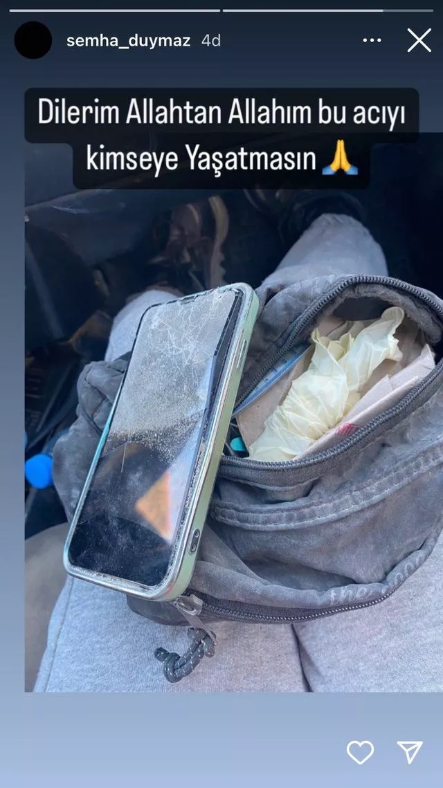 Duymaz, Instagram hesabı üzerinden iki paylaşımda bulundu. İlk olarak Taha ya da kardeşi Melek'e ait olan bir telefonu çeken Semiha Duymaz fotoğrafa, "Dilerim Allah'tan Allah'ım kimseye bu acıyı yaşatmasın" notunu düştü.