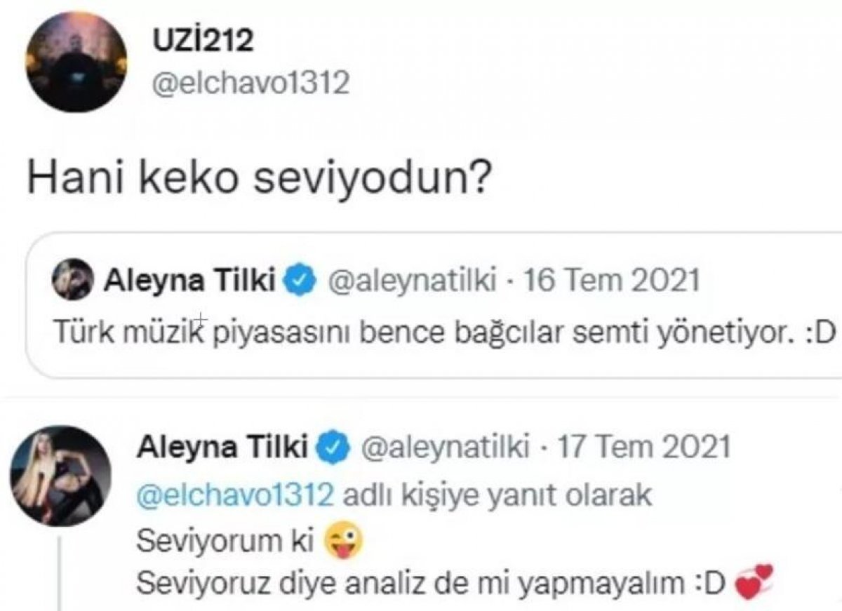 Aleyna Tilki'nin rapçi Uzi ile aşk yaşadığı ortaya çıkmıştı. Sevgilisinin Bostancı Gösteri Merkezi'ndeki konserini izleyen ve tüm gece dans eden popçunun gecesi olaylı bitti. Uzi'nin sahnedeki sözleri sonrası konser alanına polis geldi. Gençleri uyuşturucuya özendirdiği gerekçesiyle Uzi'nin ifadesine başvuruldu.