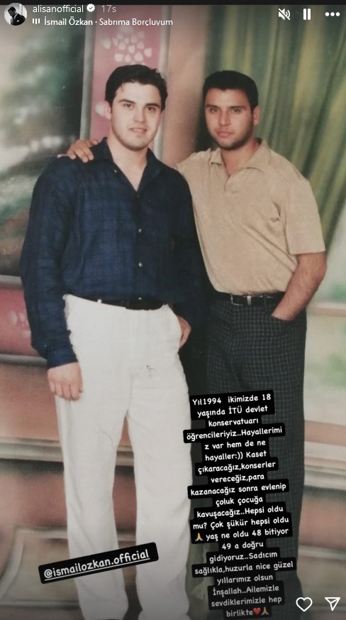 Konservatuvardan arkadaşı olan İsmail Özkan'ın doğum gününü 1994'te çektirdikleri fotoğrafla kutlayan Alişan, şu sözleri kullandı: