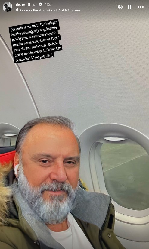 Eşi Buse Varol ile geçtiğimiz haftalarda Umre'ye giden iki çocuk babası Alişan, sosyal medya paylaştığı bir görüntüyle gündem oldu. Son olarak Antalya dönüşü uçakta paylaşım yapan ünlü şarkıcı, "Yolculuk beni bu hale getirdi. Fırtına, kar derken 30 yaş göçtüm" dedi. Yüzüne yaşlandırma efekti uygulayan Alişan'ın bu paylaşımı kısa sürede gündem oldu.