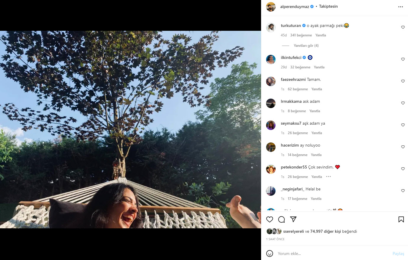 Alperen Duymaz çocukluk aşkı Kübra Kelkit ile 2020 yılında sessiz sedasız nikah masasına oturmuştu. İlişkilerini gözlerden uzak yaşayan ikilinin boşanacakları iddia edilmişti. Sosyal medya hesabından yeni paylaşım yapan Durmaz, iddialara fotoğrafla yanıt verdi.