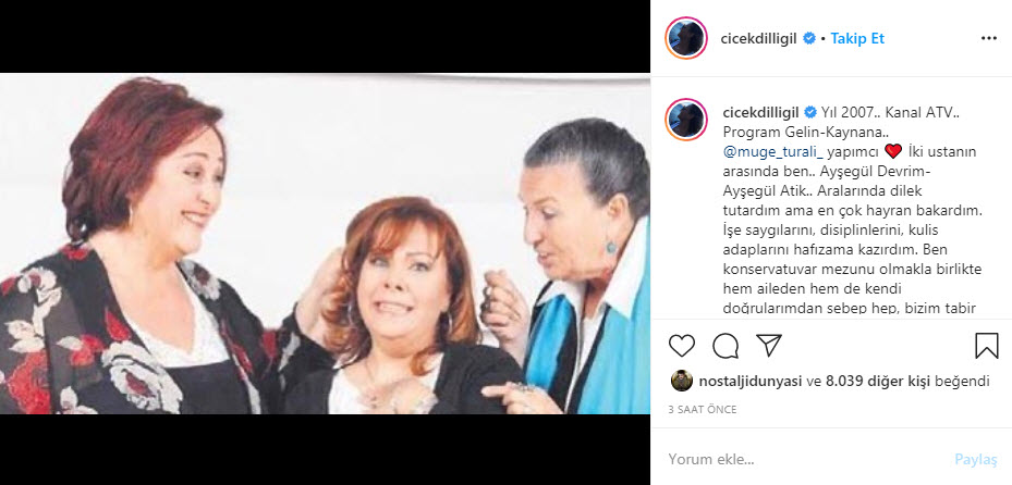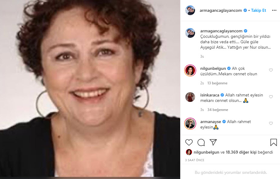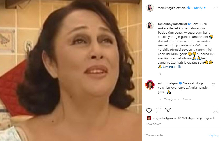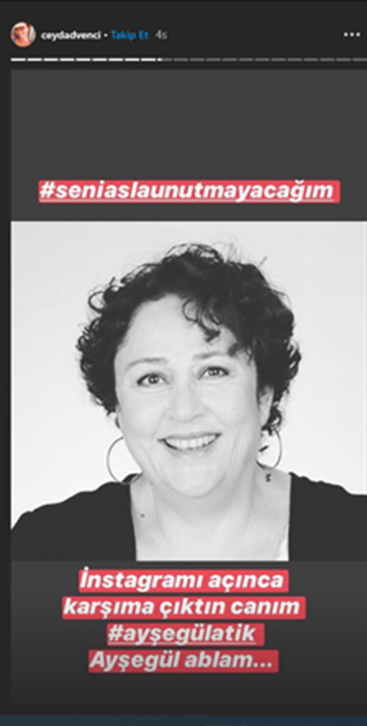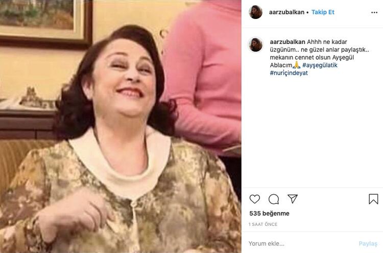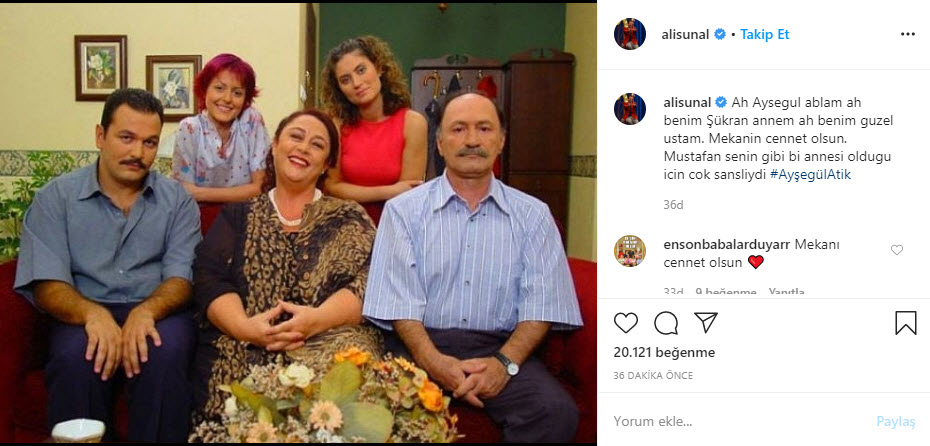 "Ahhh ne kadar üzgünüm.. Ne güzel anlar paylaştık.. mekanın cennet olsun Ayşegül ablacım."