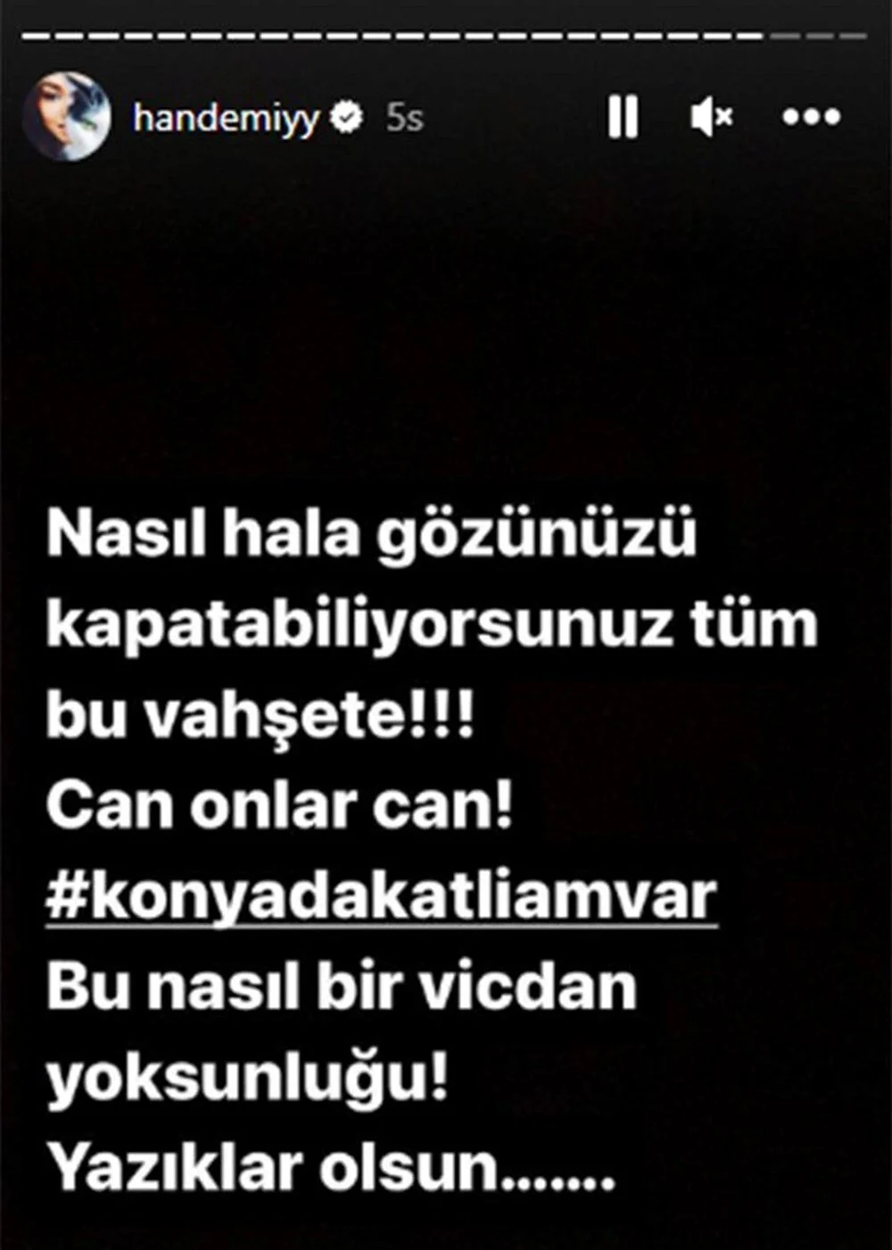 Oyuncu Hande Erçel ise paylaşımında "Nasıl hala gözünüzü kapatabiliyorsunuz bu vahşete? Can onlar can. Bu nasıl bir vicdan yoksunluğu! Yazıklar olsun" dedi.