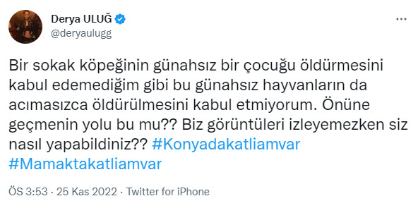 Konya'da Hayvan Rehabilitasyon Merkezi'nde yaşanan vahşet tüm Türkiye'yi ayağa kaldırdı. Bir görevlinin kürekle vurarak köpeklerin ölümüne neden olduğu görüntülere birçok ünlü isim de sosyal medya hesaplarından yaptıkları paylaşımlarla yaşananlara tepki gösterdi.