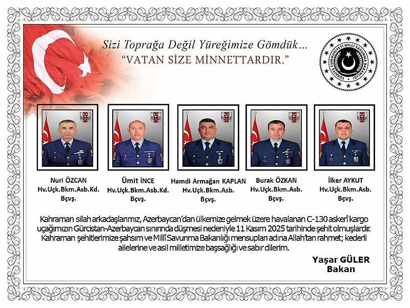 Azerbaycan'ın Gence kentinden Türkiye'ye gelmek üzere havalanan Türk Hava Kuvvetleri'ne ait C-130 tipi askeri kargo uçağı, Gürcistan-Azerbaycan sınırında düştü. Yüreklere ateş düşüren kazada 20 askerimiz şehit oldu.