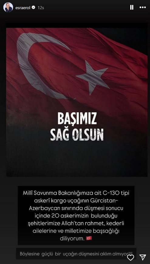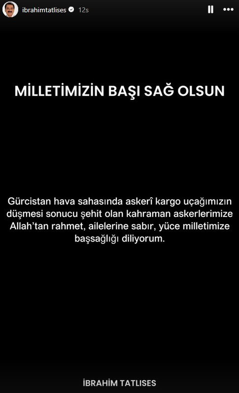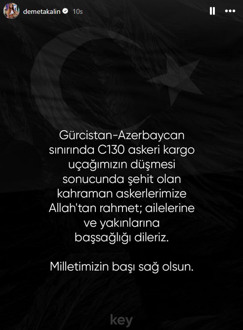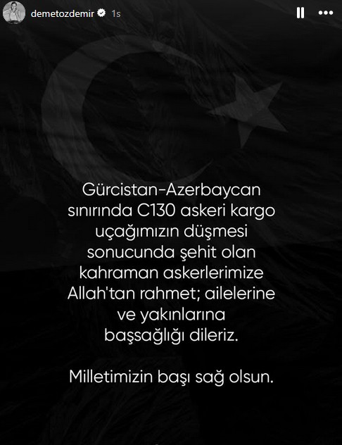 Türkiye, Gürcistan'daki uçak kazasıyla yasa boğuldu. Türkiye'ye gelmek çin havalanan C130 tipi askeri kargo uçağı Gürcistan-Azerbaycan sınırında düştü. Yüreklere ateş düşüren kazanın ardından sanat camiası, sosyal medya hesaplarından peş peşe taziye mesajları yayımladı.