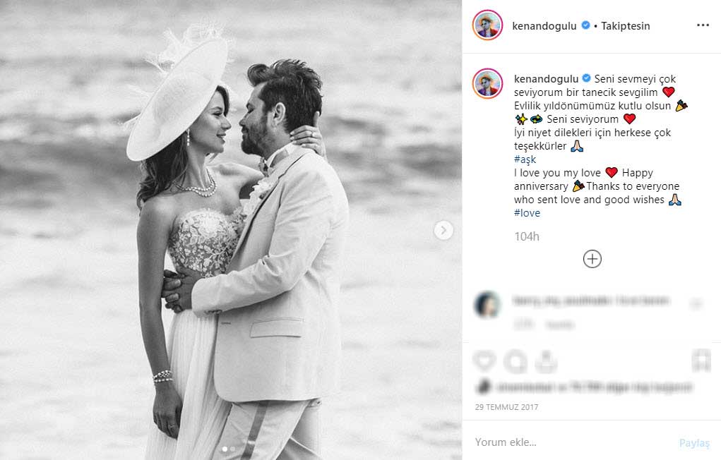 Kenan Doğulu, 2. evlilik yıldönümlerinde "İlk günkü gibi aşığım" mesajını yayınlamıştı.