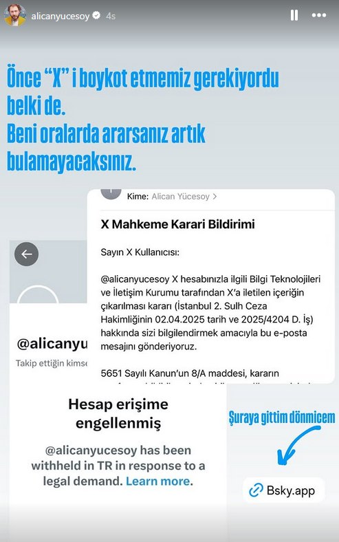 Boykot paylaşımı yapan Rojda Demirer ve Alican Yücesoy'un X hesabına erişim engeli