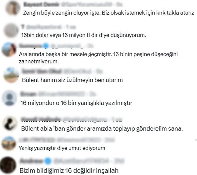 Duygusal nedenlerle bu parayı verdiğini belirten Ersoy, "Benden yalvar yakar istediğinizi, yoksa tefeciden büyük faizlerle alacağım diyerek sadece insani duygularımla acıdığım için göndermiş olduğum bu 16 bin lira hesabıma yatacak" sözleriyle sitem etti.