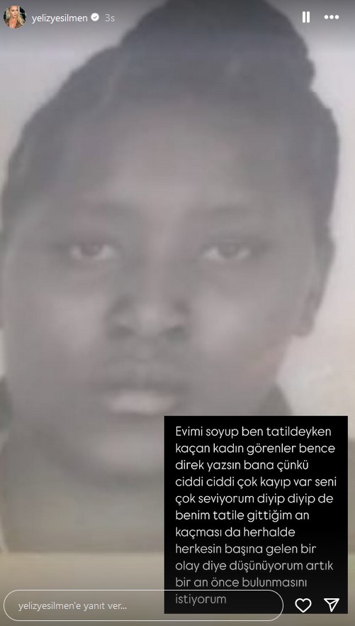 Geçtiğimiz günlerde eski eşi Ali Uğur Akbaş ile barıştığını duyuran Yeşilmen, bu kez başına gelen olayla gündeme geldi. Mısır tatilinden dönen ünlü isim, evine vardığında büyük bir şok yaşadı. Instagram hesabından soyulduğunu duyuran Yeşilmen, "Bir an önce bulunmasını istiyorum. Çok ciddi kayıp var" deyip çalışanının fotoğrafını da paylaştı.