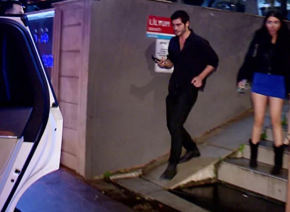 Burak Deniz'in kadın arkadaşları, 30 yaşındaki oyuncunun aracına bineceği sırada görüntülendiklerini fark edince, aracın kapısını geri kapattı.