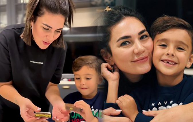 Buse Varol oğlu Burak ile 'Dubai çikolatası' yaptı! Yerken mest oldular...