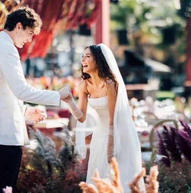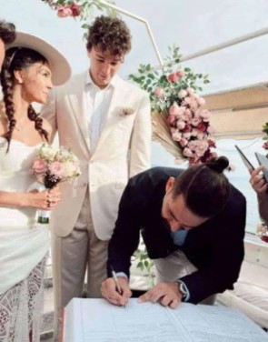 Makedonya'da kıyılan resmi nikâhın ardından Türkiye'ye gelen ünlü çiftin Çeşme'deki düğününe; sanat, sosyete ve spor camiasından tanınmış simalar katılmıştı. Törendeki temsili nikahı Acun Ilıcalı kıymıştı.