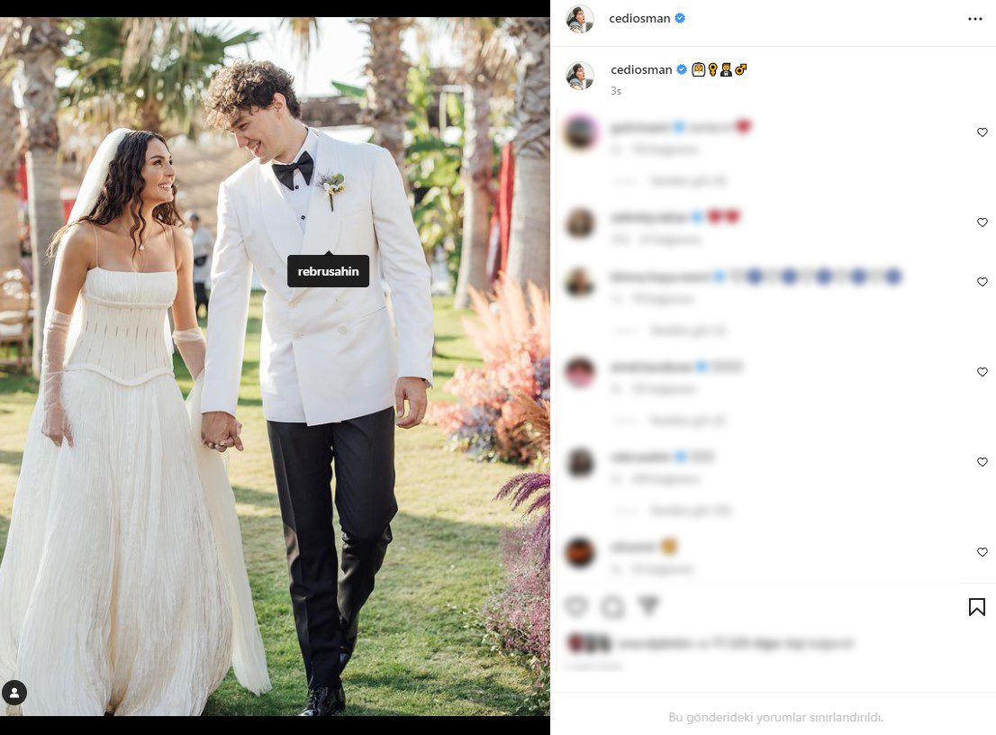 Şimdilerde mutlu bir evlilik sürdüren çiftten Cedi Osman, düğünde çekilen bir karelerini 1.4 milyon takipçisi bulunan Instagram sayfasından eşi Ebru Şahin'i kalbine etiketleyerek paylaştı.