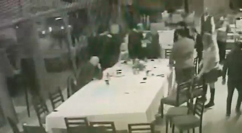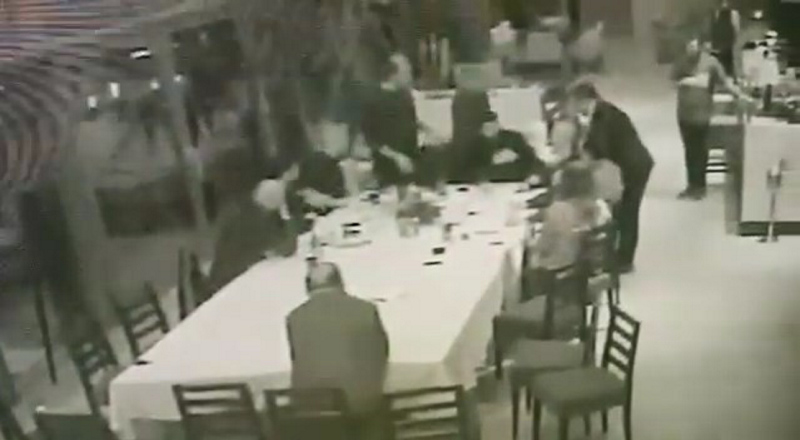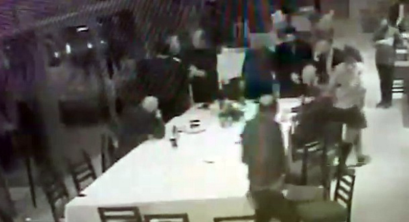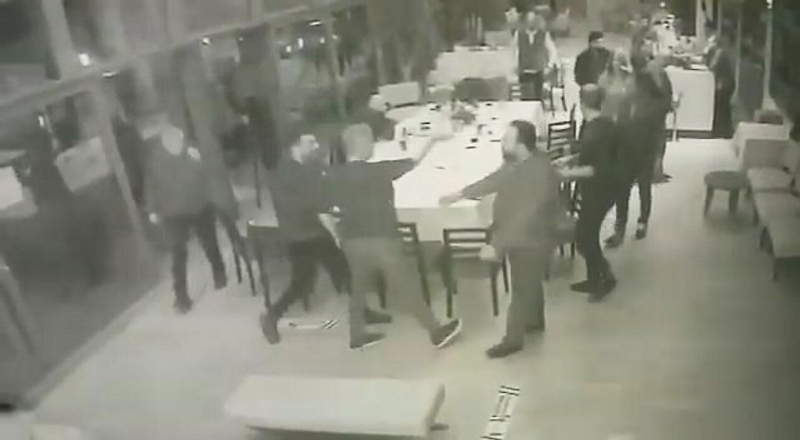 Ardından masadan aldığı servis bıçağı ile Can'a saldıran Cengiz Kurtoğlu'nu araya girenler sakinleştirmeye çalıştı. Yaşanan olay iş yerinin güvenlik kamerasına saniye saniye yansıdı.