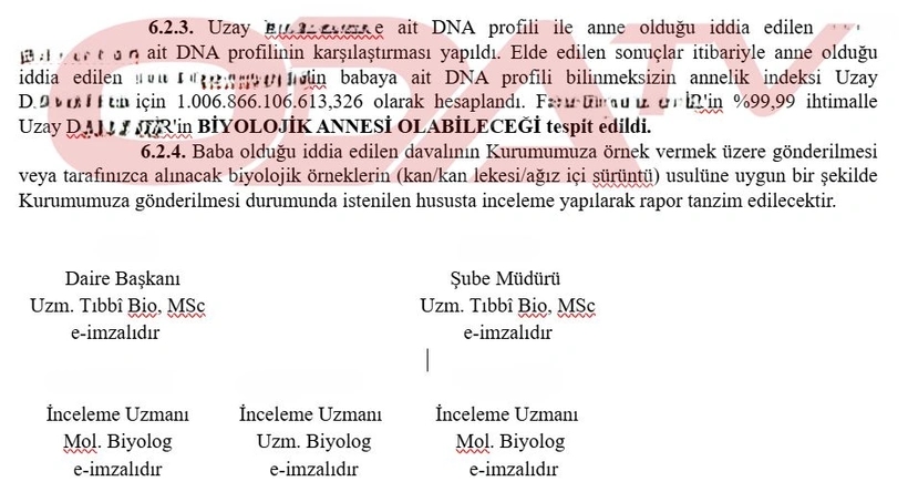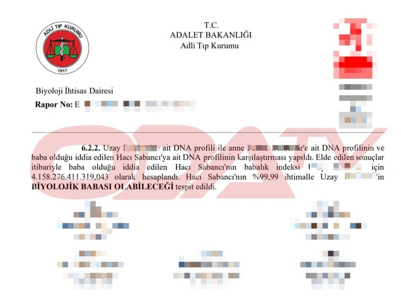 Odatv'nin haberine göre; Uzay isimli küçük çocuktan ve Hacı Sabancı'dan alınan DNA örnekleri eşleşti.