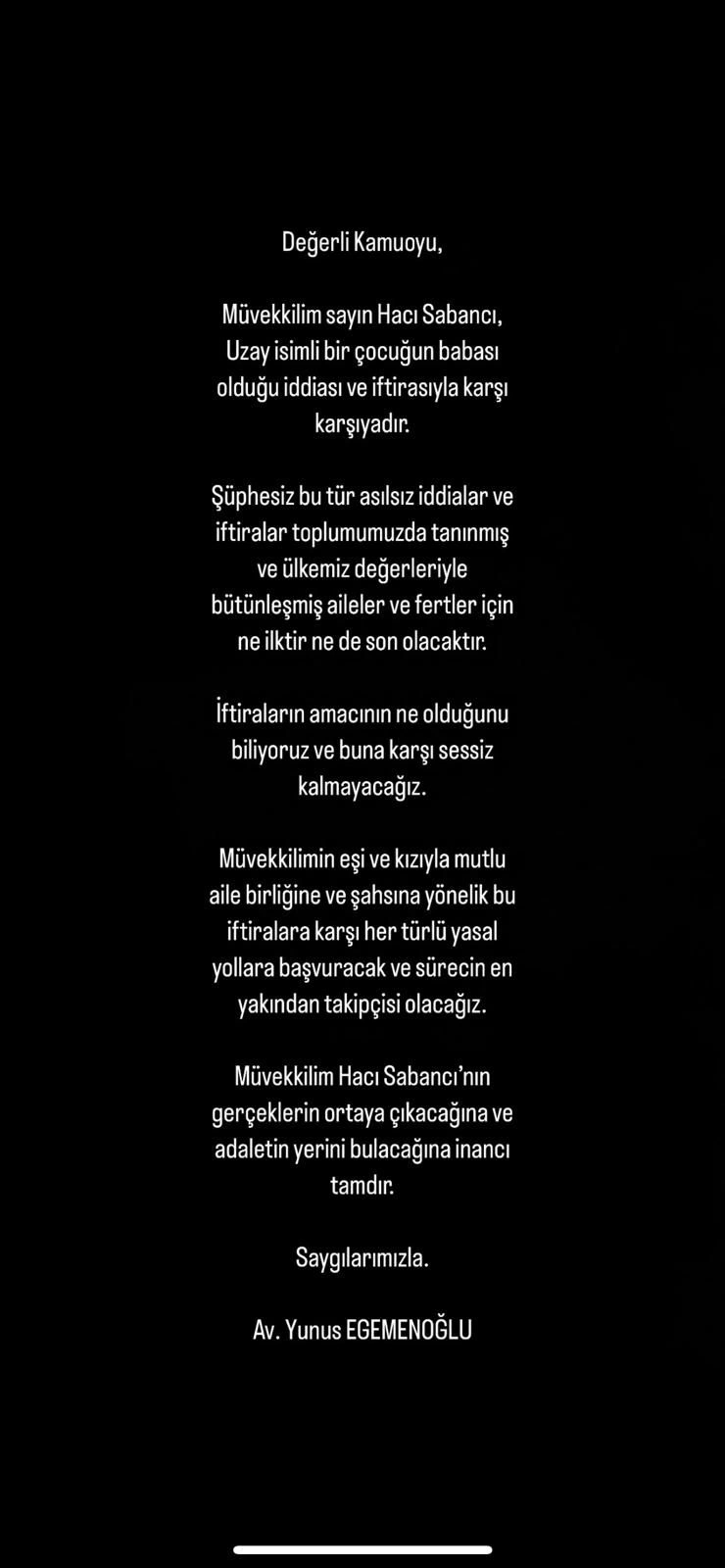 Sosyete bu haberle çalkalanıyor! Hacı Sabancı'nın bir çocuğu daha oldu! Fatma D. tarafından açılan babalık davasında şoke eden bir gelişme yaşandı. Adli Tıp Kurumu'ndan alınan rapora göre, yapılan DNA testlerinde Hacı Sabancı'nın, 4 yaşındaki Uzay'ın biyolojik babası olduğu yüzde 99.99 doğruluk oranıyla kanıtlandı. Gündemde yankı uyandıran gelişme sonrası Hacı Sabancı, sosyal medya paylaşımıyla dikkat çekti.