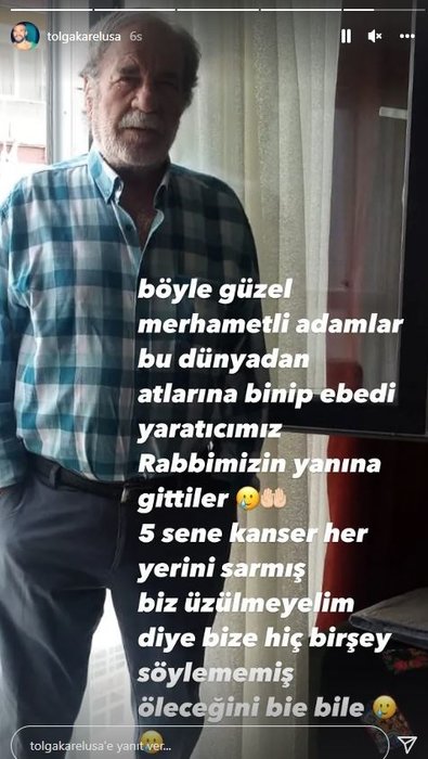 Babasının ölüm haberi ile sarsılan Tolga Karel duyduğu üzüntüyü yaptığı paylaşımlarla dile getirmişti.