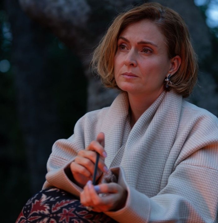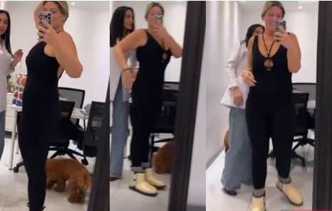 Vücudunu saran siyah tulum ile objektif karşısına geçen oyuncu, "Yeni yıl öncesi giden -39 cm ve verilen kiloların şımarması yapıldı" ifadelerini kullandı.