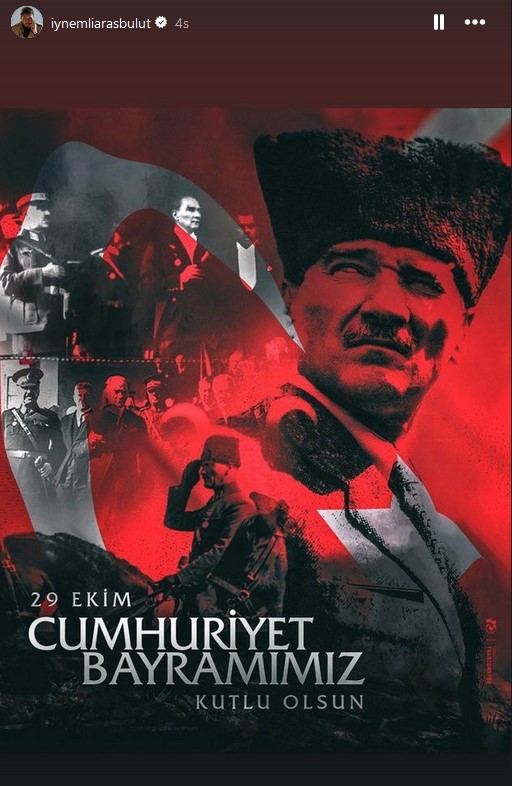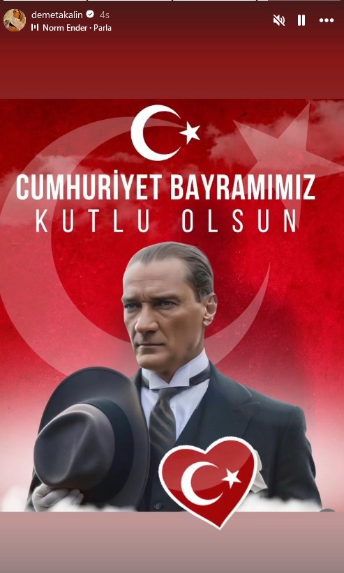 Ulu Önder Mustafa Kemal Atatürk'ün temellerini attığı Cumhuriyetin ilanının üzerinden 101 yıl geçti. Ünlü isimler, 29 Ekim Cumhuriyet Bayramı'nı sosyal medya hesaplarından paylaştıkları fotoğraflarla kutluyor.