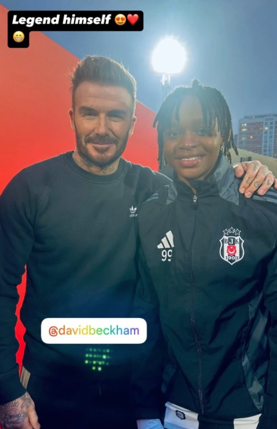 Beckham'ın reklam çekimi için Beşiktaş Kadın Futbol Takımı ile bir araya geldiği belirtildi. Siyah-beyazlı takımdaki futbolcular, Beckham ile buluştukları fotoğrafları sosyal medya hesaplarından paylaştı.
