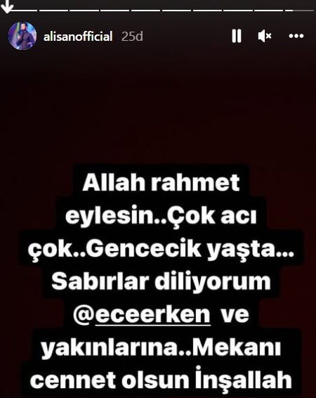 Erken'in bu paylaşımının altına pek çok kişi ölüm haberini duyunca başsağlığı mesajı yazdı. Erken'in paylaşımına "Ah Ece... Allah sabır versin" yorumları yağdı.