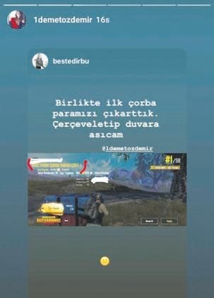 Demet Özdemir ve yakın arkadaşı Beste Kanar PUBG tutkunu çıktı. Tüm dünyada ilgiyle oynanan mobil oyun sonrası Özdemir ve Kanar, "Birlikte ilk çorba paramızı çıkarttık" notuyla birinciliklerini yayınladı.