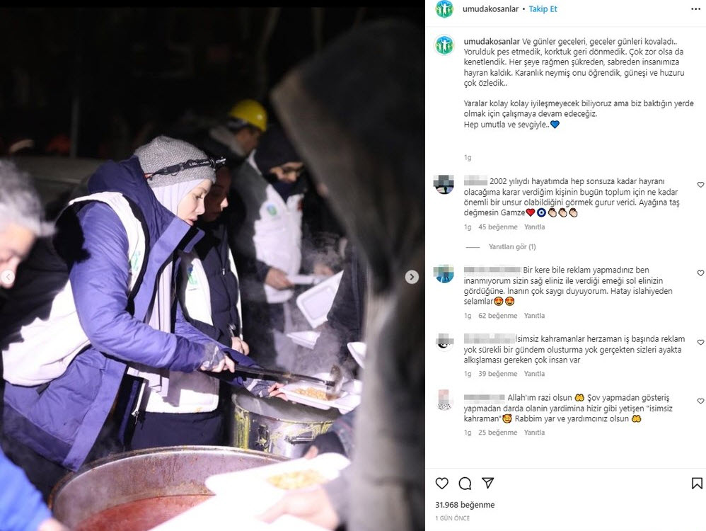 Kurucusu olduğu Umuda Koşanlar Derneği ile bugüne kadar binlerce kişiye yardım ulaştıran Gamze Özçelik Kahramanmaraş depremi sonrası soluğu bölgede almıştı. Çalışmalarını sessiz sedasız sürdüren Özçelik'in bünyesinde yer aldığı yardım derneği aracılığıyla yeni bir karesi ortaya çıktı. Özçelik'in paylaşımındaki notu herkesi duygulandırdı.