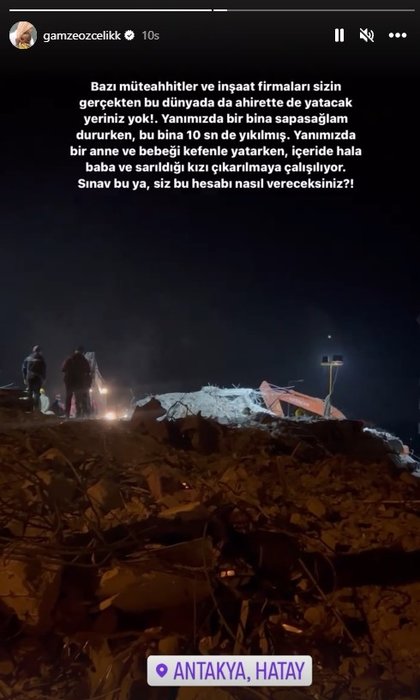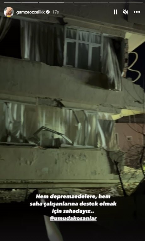 Günlerdir canla başla depremzedelere yardım eden Gamze Özçelik'in Instagram'dan "Yanımızda bir anne ve bebeği kefenle yatıyor, baba ve sarıldığı kızı çıkarılmaya çalışılıyor. Bazı müteahhitler ve inşaat firmaları sizin gerçekten bu dünyada da ahirette de yatacak yeriniz yok! Yanımızda bir bina sapasağlam dururken bu bina 10 saniyede yıkılmış" diyerek paylaştığı o anlar yürek sızlatmıştı.