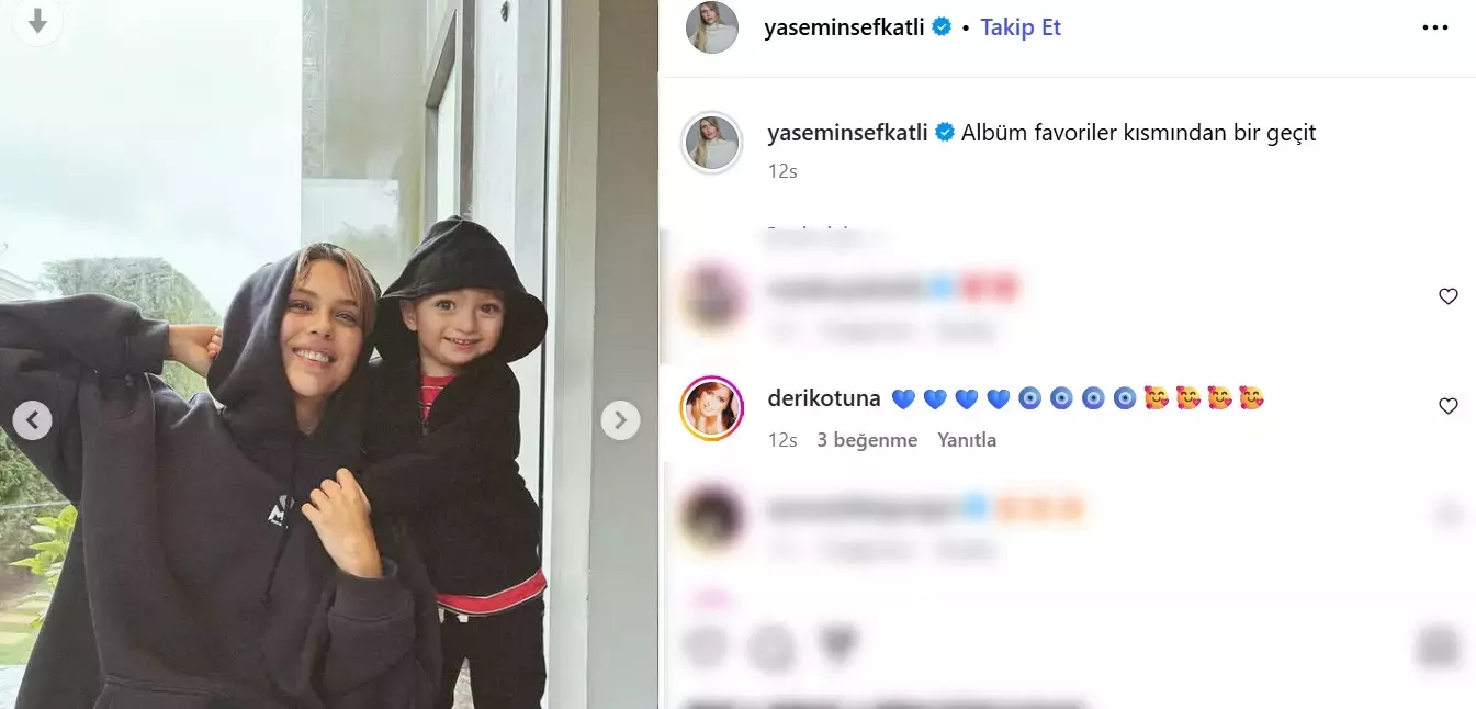 Fotoğraflar kısa sürede yoğun beğeni toplarken, ikizlerin babaannesi Derya Tuna da paylaşımlara kalp ve nazar boncuğu emojisiyle yorum yaptı.