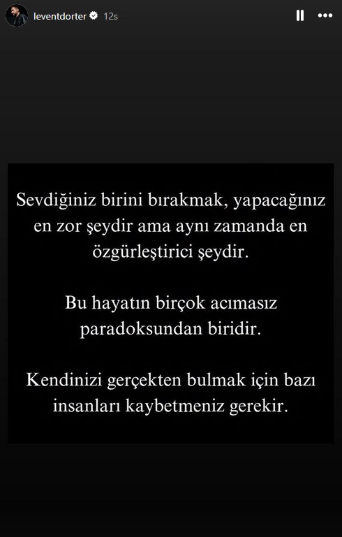 Levent Dörter ise "Sevdiğiniz birini bırakmak yapacağınız en zor şeydir ama aynı zamanda özgürleştiricidir." notuyla duygusal bir paylaşım yaptı.