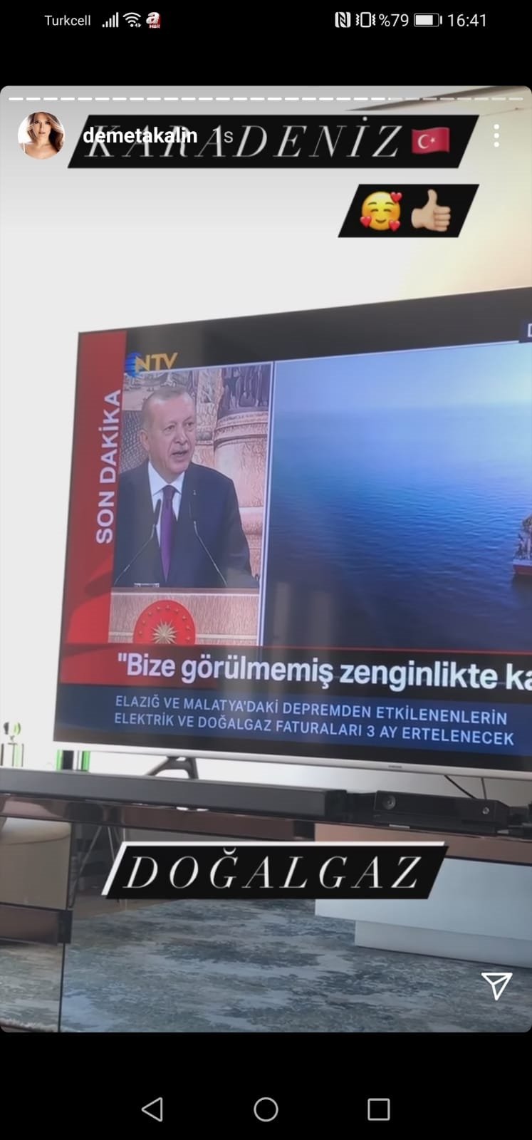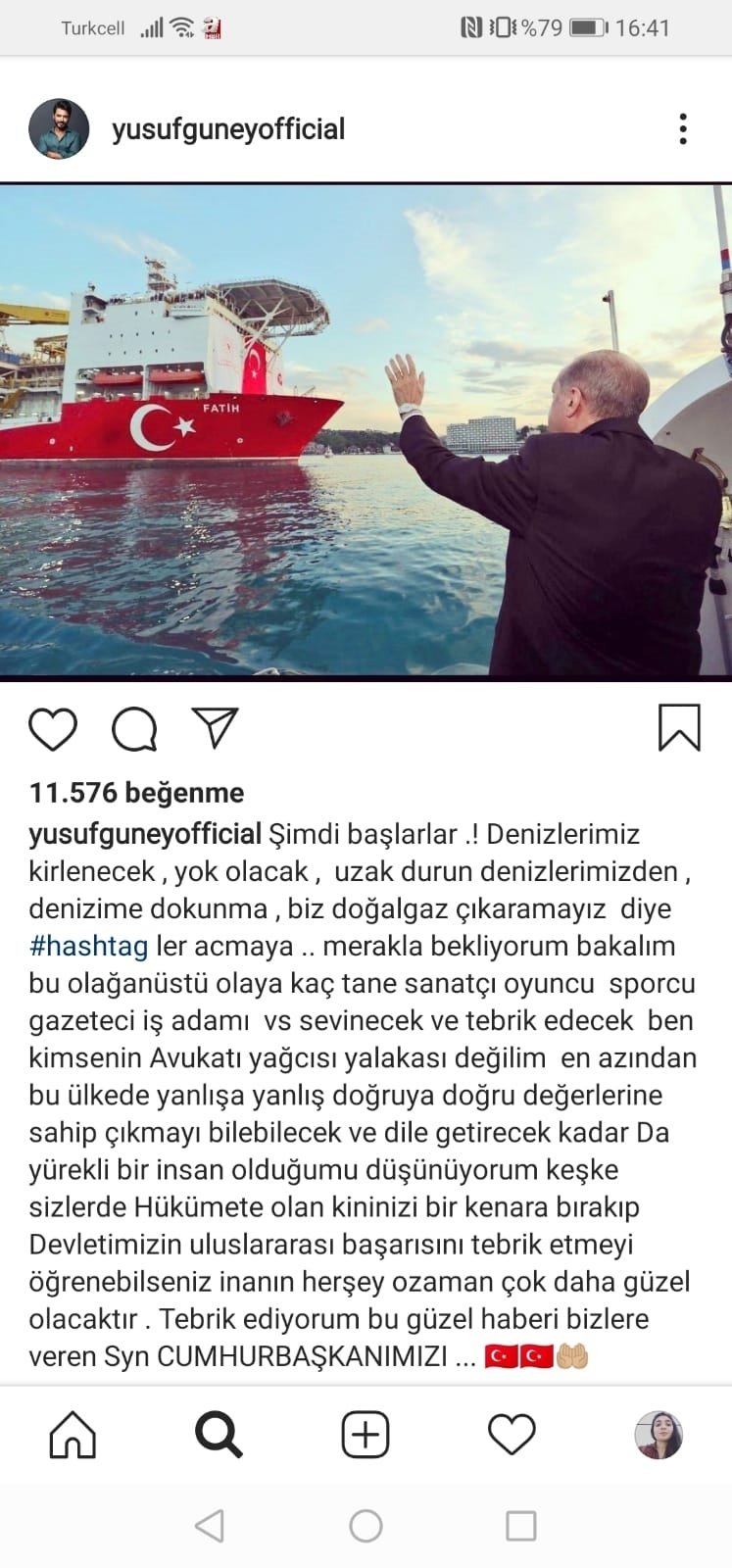 Başkan Recep Tayyip Erdoğan, Dolmabahçe Çalışma Ofisi'nde tüm Türkiye'nin beklediği büyük müjdeyi açıkladı. Erdoğan'ın Karadeniz'de doğalgazın bulunduğunu müjdelemesi sanat dünyasında da heyecan yarattı. Ünlü isimler mutluluklarını sosyal medya hesaplarından paylaştı. İşte ünlü isimlerin paylaşımları...