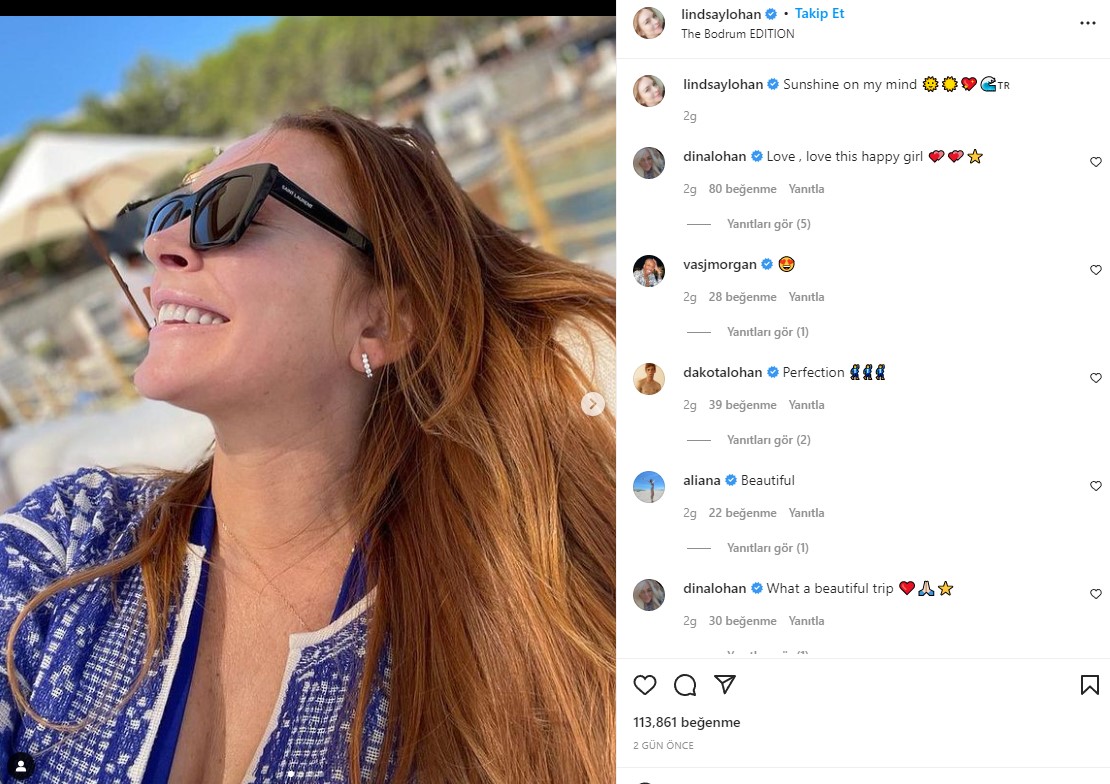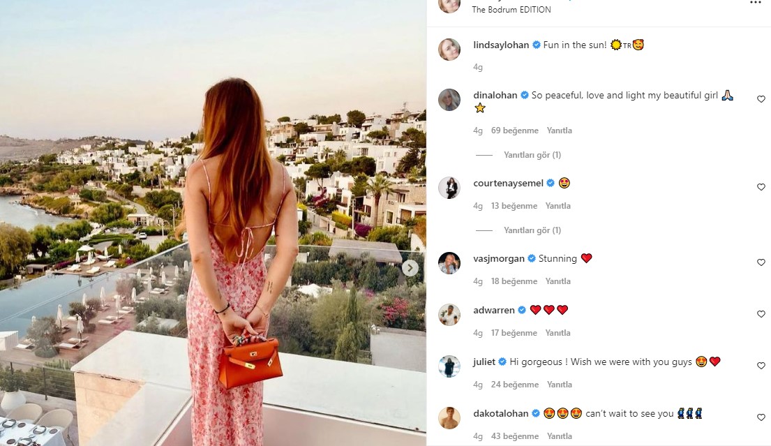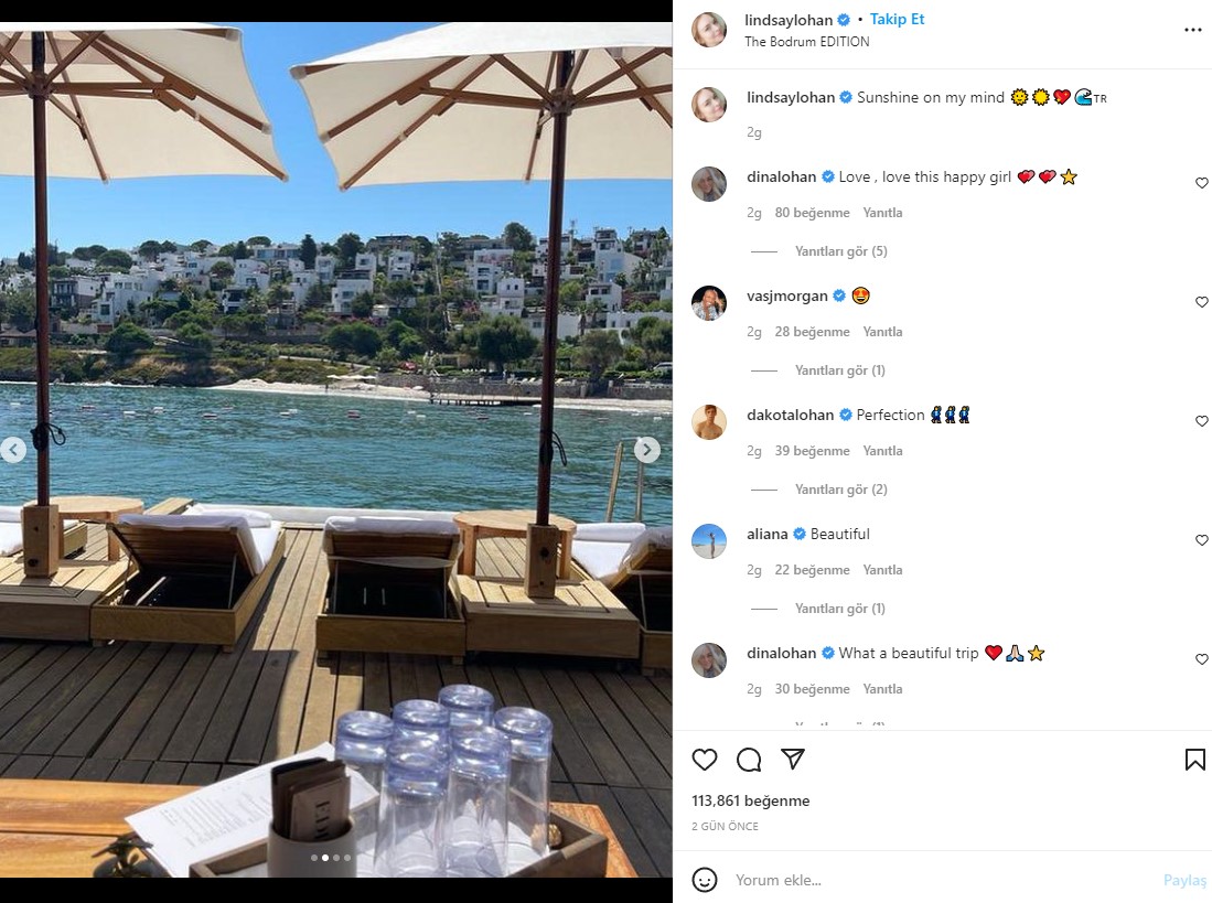 Türkiye ünlü isimleri tatillerde de misafir etmeye devam ediyor. Dünyaca ünlü Amerikalı sinema ve film oyuncu Lindsay Lohan eşi Bader Shammas ile Bodrum'da balayı yapıyor. Bodrum'a hayran kalan Lohan, sosyal medya hesabından renkli tatil anlarını sık sık paylaşıyor.