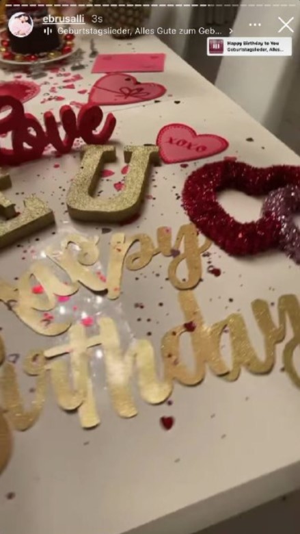 Ebru Şallı, eşinin hazırladığı sürpriz doğum günü ile ilgili sosyal medya hesabından paylaştığı karelere, "Doğum günüm için, tüm güzel dilekleriniz için teşekkür ederim. Ayrınca beni balonlara, kalplere, sevgiye ve öpücüklere boğan eşime çok teşekkür ederim." notunu düştü.
