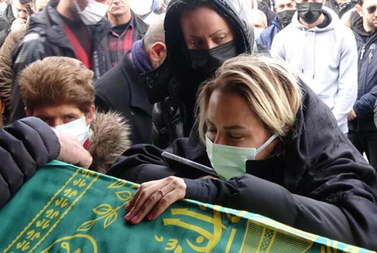 Eşinin tabutuna sarılan sunucuyu, arkadaşları güçlükle teskin etti. Camiye anne Hacer Mahmutyazıcıoğlu, bir kolunda oğlunun eşi Ece Erken, diğer kolunda ise oğlunun eski eşi Benan Kocadereli'nin eşliğinde geldi.