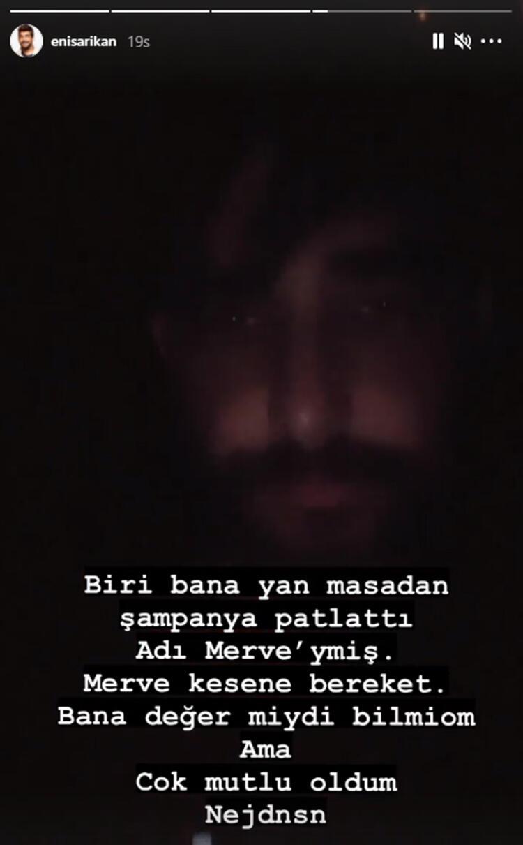Paylaşımına "Biri bana yan masadan şampanya patlattı. Adı Merve'ymiş. Merve kesene bereket. Bana değer miydi bilmiyorum, ama çok mutlu oldum." mesajını yazan oyuncu, yine herkesi güldürmeyi başardı.
