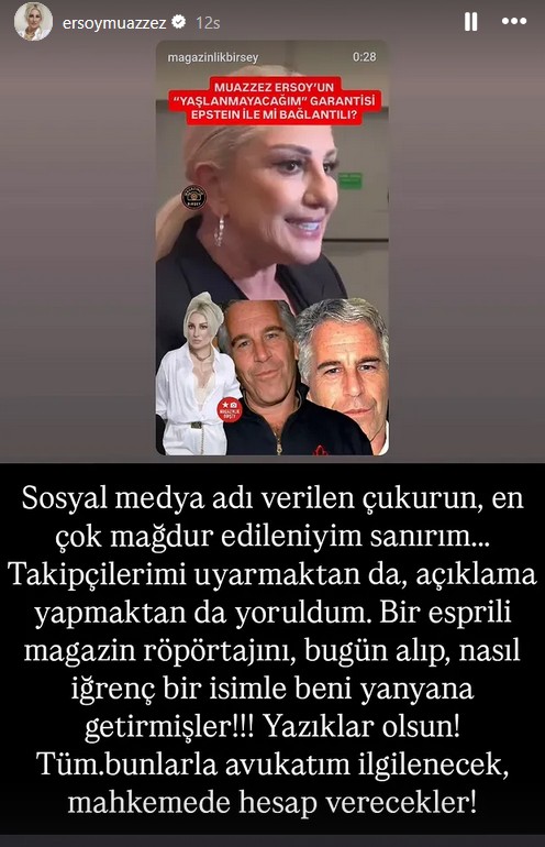 Yonca Evcimik'in "estetik" açıklamalarının ABD'li sapık milyarder Jeffrey Epstein davasıyla ilişkilendirilmesinin ardından benzer bir durum Muazzez Ersoy'un da başına geldi. Aylar önceki röportajındaki sözleri aynı davaya bağlanan sanatçı, iddialara sert tepki göstererek hukuki yollara başvuracağını açıkladı.