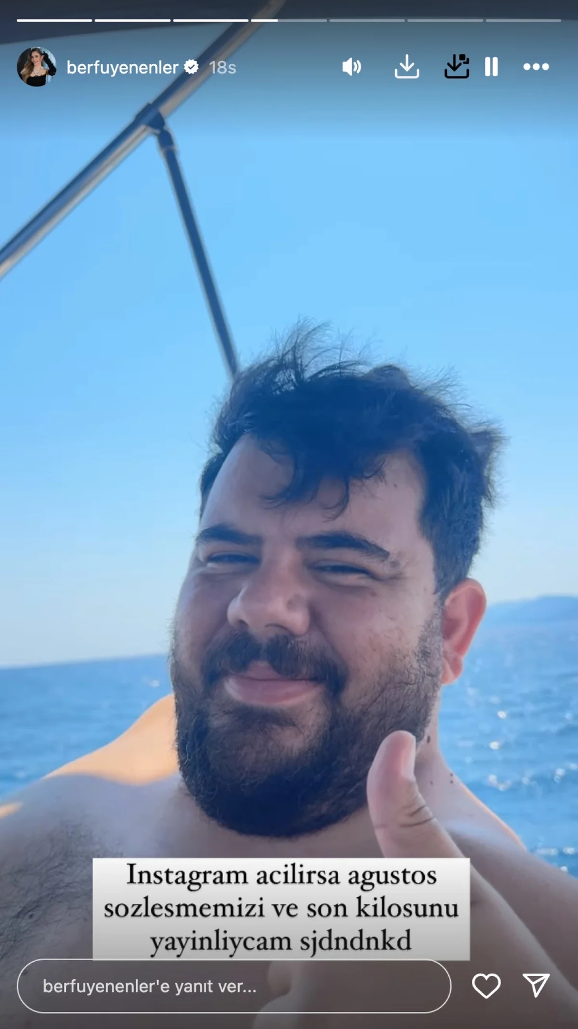 Çocuklarının babası Eser Yenenler'in zayıflamasına çok sevinen Berfu Yenenler, eşinin son haliyle ilgili bilgi verdiği videoyu şu notla yayınladı: