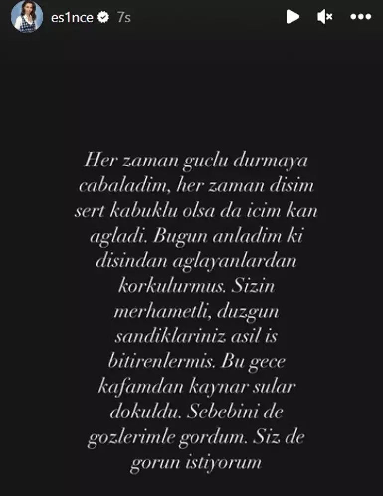 İki yıllık eşinin ihanetiyle sarsılan Esin Çepni, Instagram hesabından yaptığı açıklamada acısını şu sözlerle dile getirdi: Her zaman güçlü durmaya çabaladım, her zaman dışım sert kabuk olsa da içim kan ağladı.