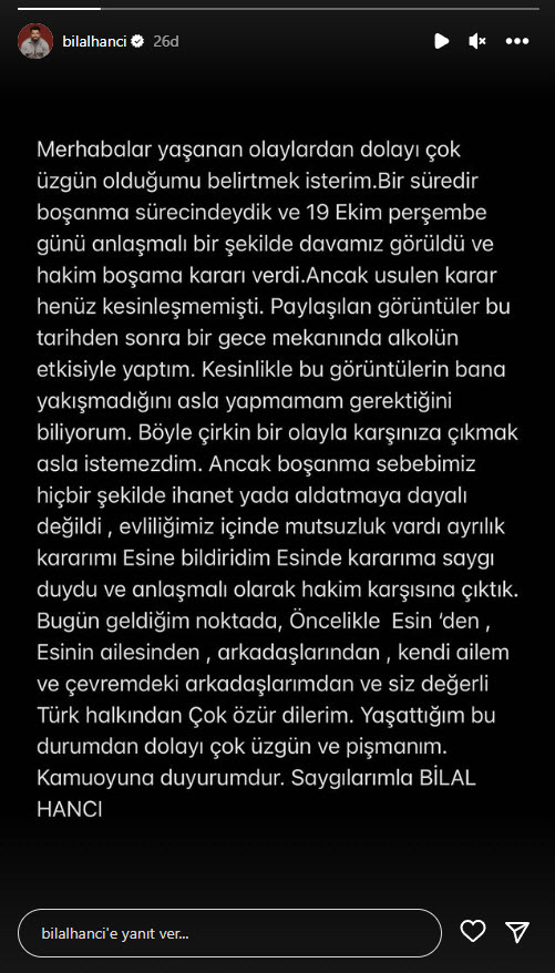 Esin Çepni’nin ihanet ifşası sonrası Bilal Hancı sessizliğini bozdu! Kendisini böyle savundu
