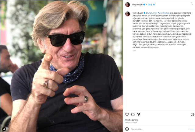 Oyuncu Hülya Duyar, yakın dostu Ünal Silver'in Vefat haberinin ardından veda mesajı yayınladı.