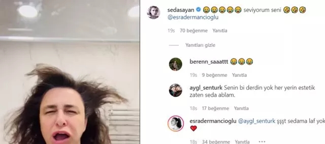 Seda Sayan'ın 'Seviyorum seni' yorumuna gelen, 'Senin bir derdin yok, her tarafın estetik zaten Seda Ablam' yorumuna sessiz kalmayan Dermancıoğlu, 'Şşşt Seda'ma laf yok' yanıtını verdi.